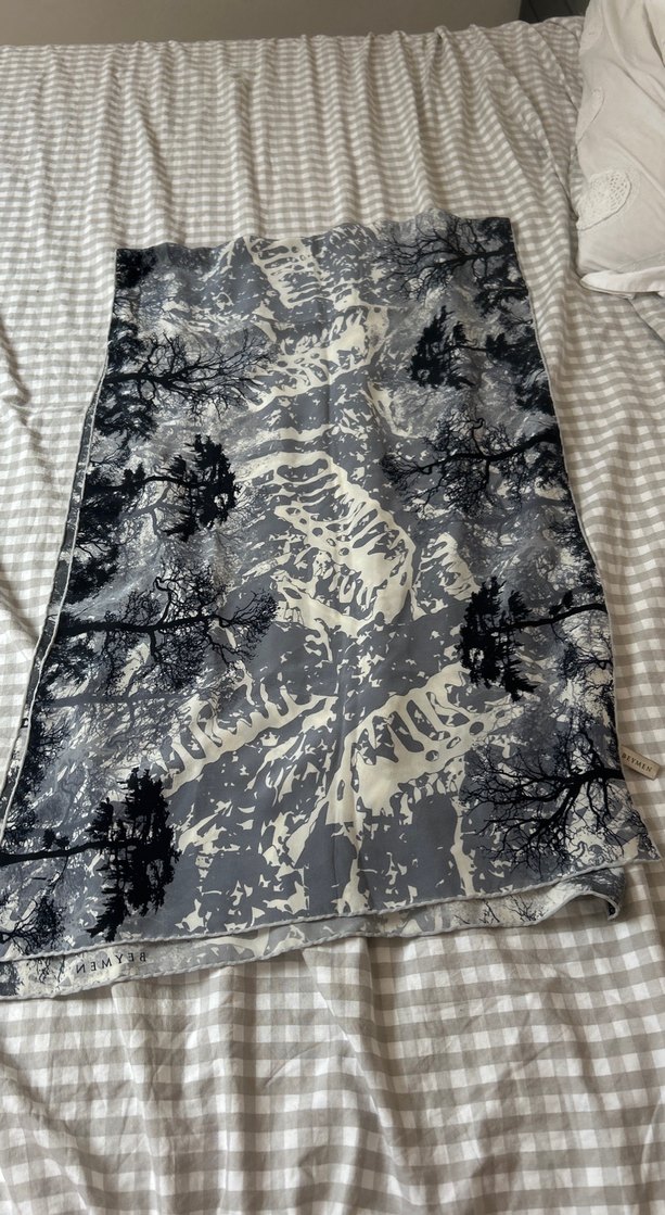 Beymen Gri renkli, bohem tarzda, ağaç desenli, drapeli kadın şalı. Moda öncüleri için özgün ve şık bir aksesuar.