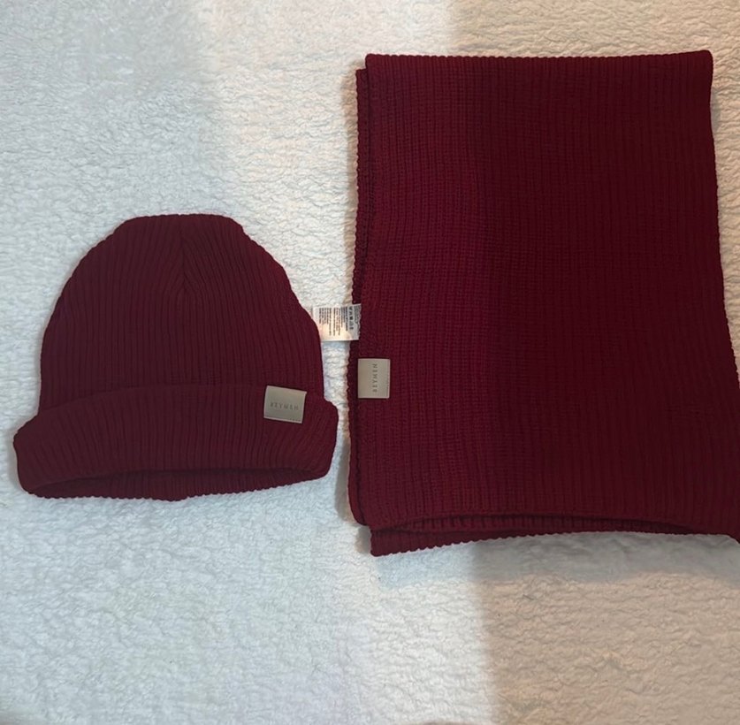 Beymen Bordo Örgü Bere ve Atkı Seti