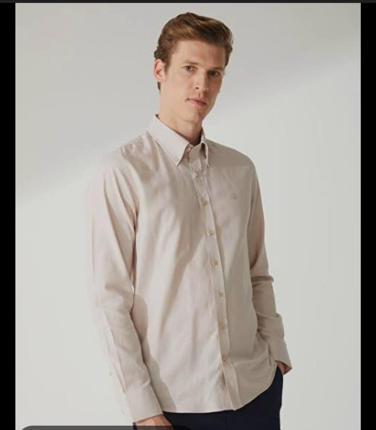 Beymen Business Alım Fit Düğmeli yaka gömlek bej