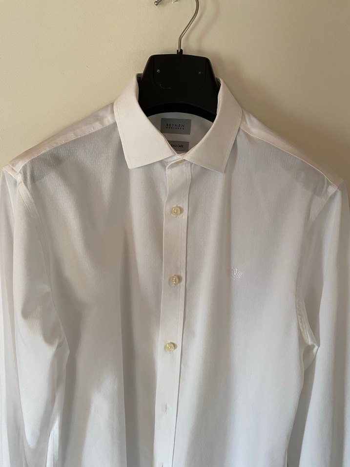 Orijinal Beymen Business gömlek Small beden Kendinden desenli kumaş %100 pamuk Kırışıklık olmayan easy care kumaş Deformasyon yok gayet iyi