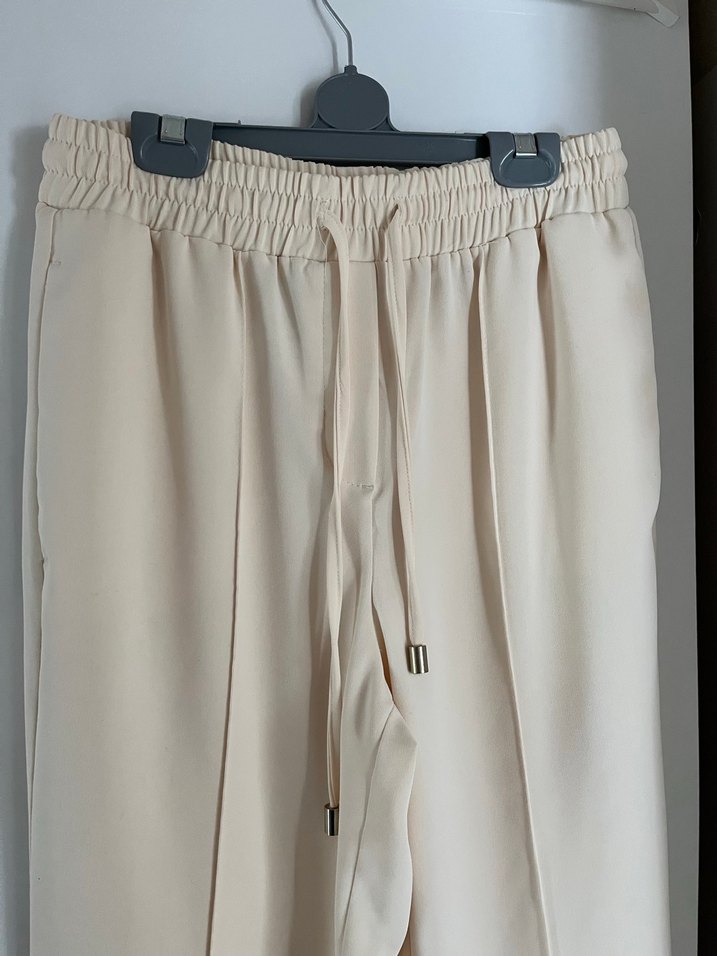 Beymen Club 34 Beden Krem Rengi Pantolon. Orijinaldir kendi mağazasından almıştım. Son fotoğrafta içindeki orijinallik etiketini ve kodunu ekledim. Çok sayılı kullandım tertemiz bir ürün. Kalıbı rahattır. Boyu 99cm. Basen 49cm. Beli 37cm lastikli ve iplidir esneyebiliyor.