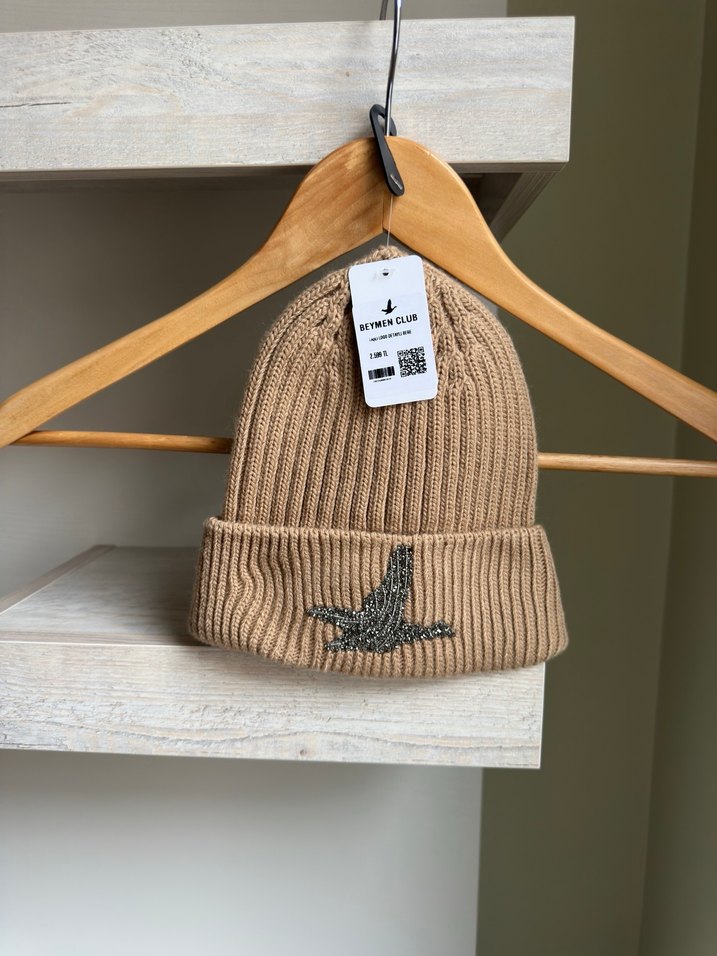Bej renkli örgü kadın bere, gri nakışlı detaylarla rahat ve sokak modasına uygun bir tasarıma sahiptir. Yumuşak örme kumaştan üretilmiştir.