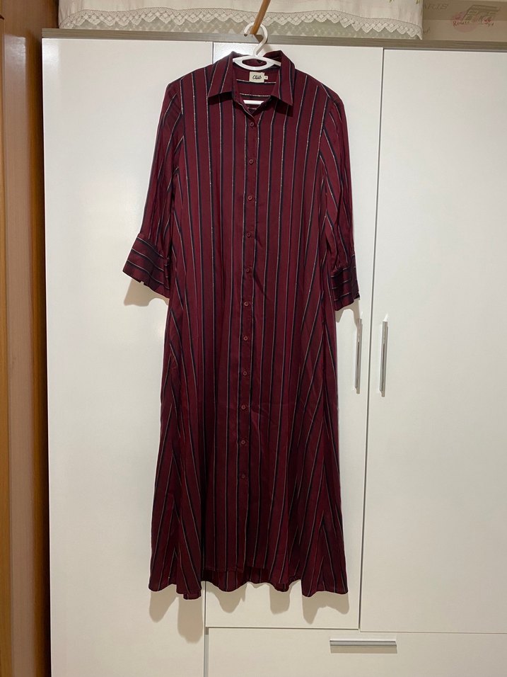 Beymen Club Bordo Çizgili Uzun Gömlek Elbise