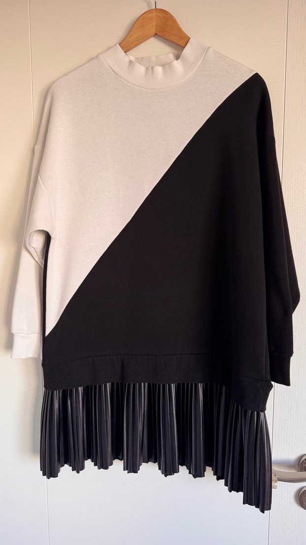 M beden Suni deri pileli etek kısmı Sweatshirt üst kısmı Geniş kalıptır