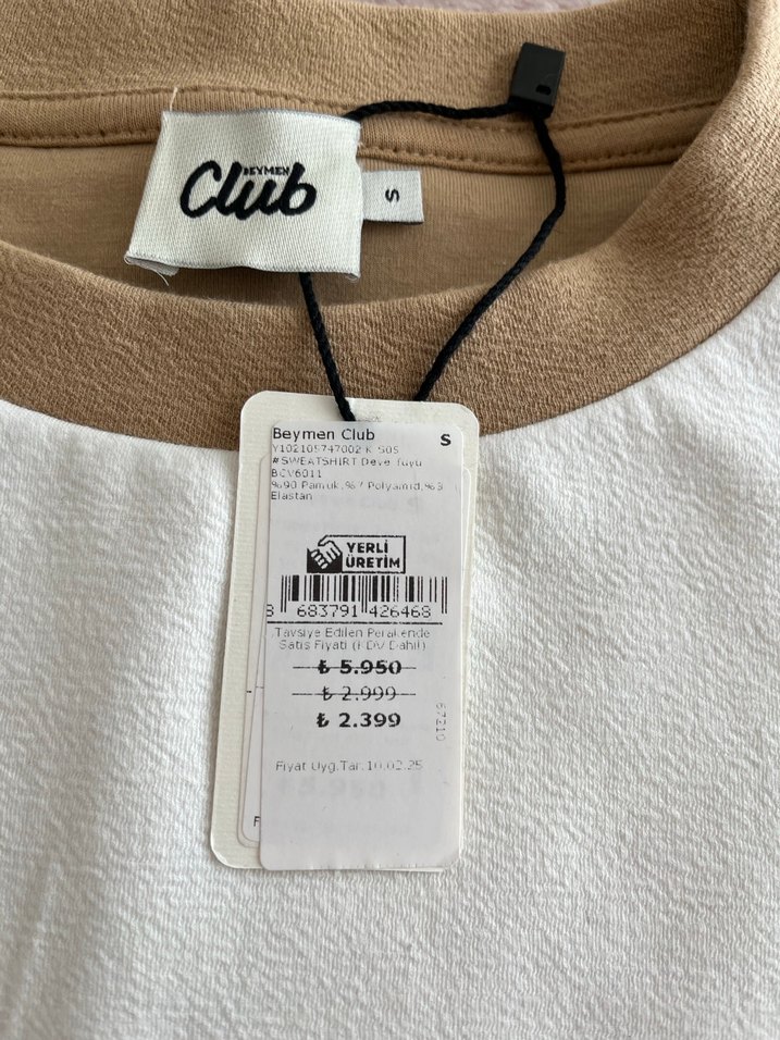 Beymen Club erkek bej casual rozet, hafif tonlarda ve streetwear tarzında. Etiket fiyatı 2.399₺ olarak indirimli gösteriliyor. ️