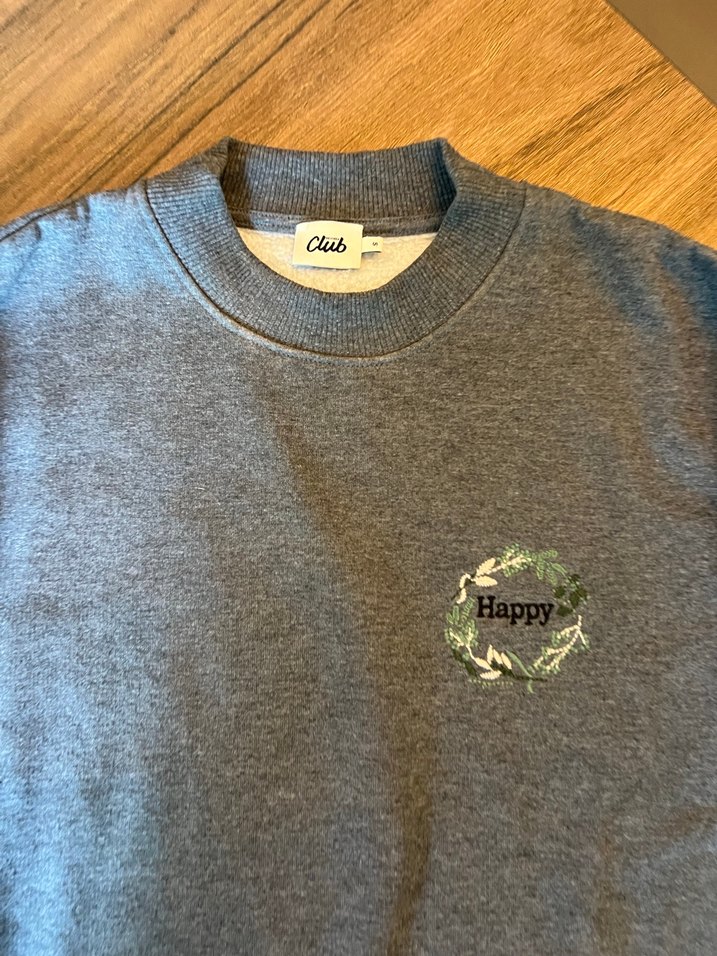 Sıfır hiç kullanılmadı. Sadece yıkandığı için etiketi çıkarıldı. Pamuklu, gri renkli, bisiklet yaka ve uzun kollu sweatshirt. Üzerinde "Happy" baskısı ve fermuarlı detay bulunur. Rahat kesim ve normal boyda, günlük sokak stili için uygun.