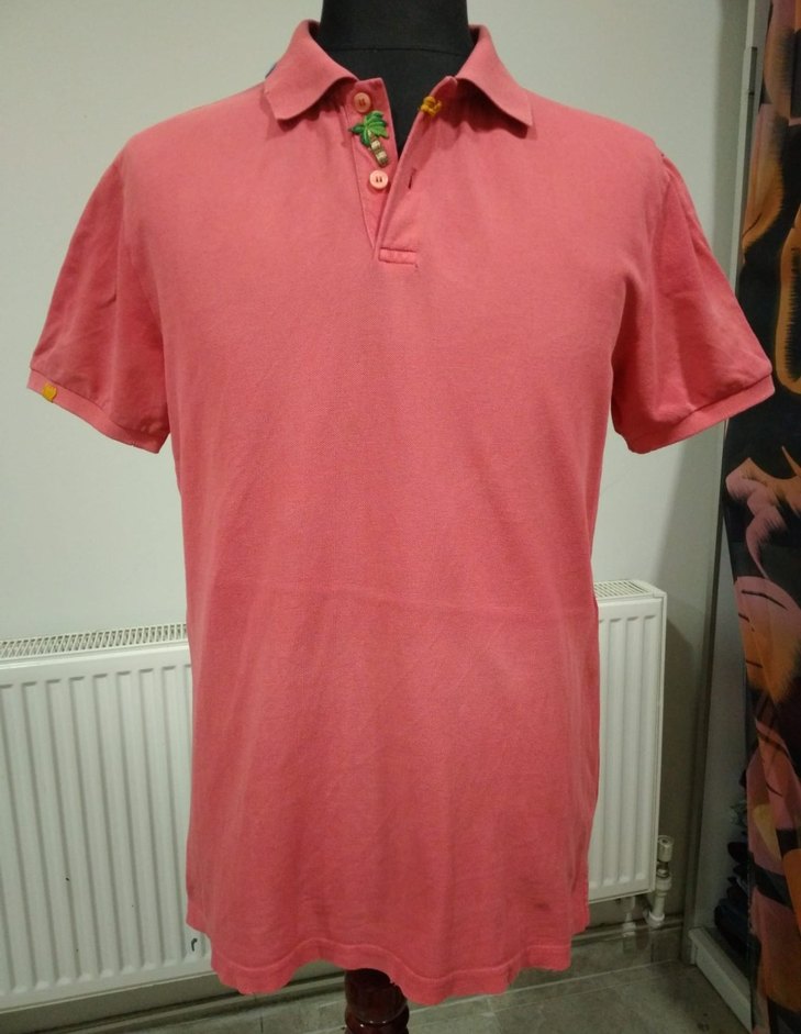 Erkekler için düğmeli, yakalı ve kısa kollu pembe polo tişört. Rahat kesim ve pastel tonlarda, günlük kullanıma uygun sade tasarım.