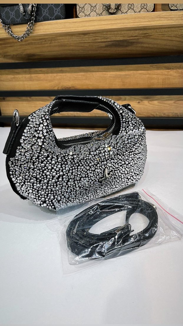 Siyah yılan desenli kadın çantası, payetlerle kaplıdır. Plastik malzemeden üretilmiş, rock punk ve gösterişli tarz sunar. Günlük kullanıma uygundur ve ekstra askı ile gelir.