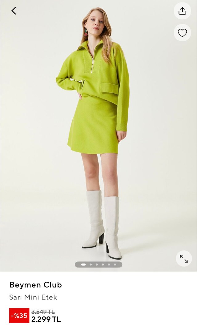 Beymen Club yeşil mini etek, rahat kesimi ve yumuşak, sıcak kumaşıyla günlük kullanıma uygun, zahmetsiz şıklık sunar. Etiketinde sarı yazıyor ama bence fıstık yeşili.