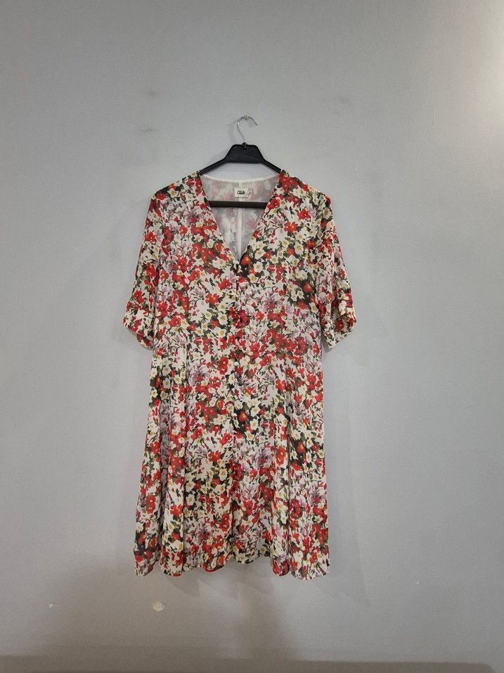 Renkli, V yakalı, kısa kollu, bol kesim bohem elbise. Drapeli, çiçel desenli, şifon kumaştan, günlük ve özel günler için kullanıma uygundur.