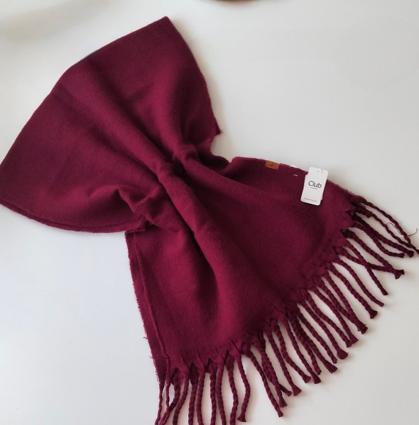 Bordo renkte, yün kumaştan yapılmış, püskül detaylı, bohem tarzda kadın atkısıdır. Rahat ve sıcak tutar. QR kod okutmalı