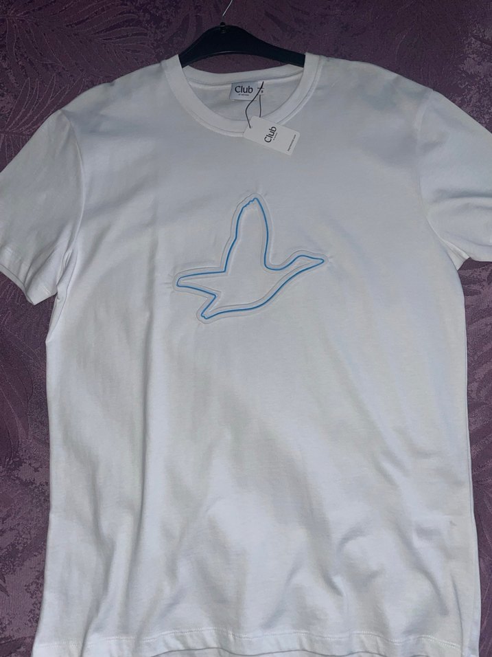 Beyaz pamuklu, kısa kollu, yuvarlak yakalı, salaş kesim tişört Önünde minimalist kuş baskısı bulunur. Günlük kullanıma uygundur. Beymen Clup sıfır sadece omuzda leke çözücüyle çıkacak hafif bir sararma var