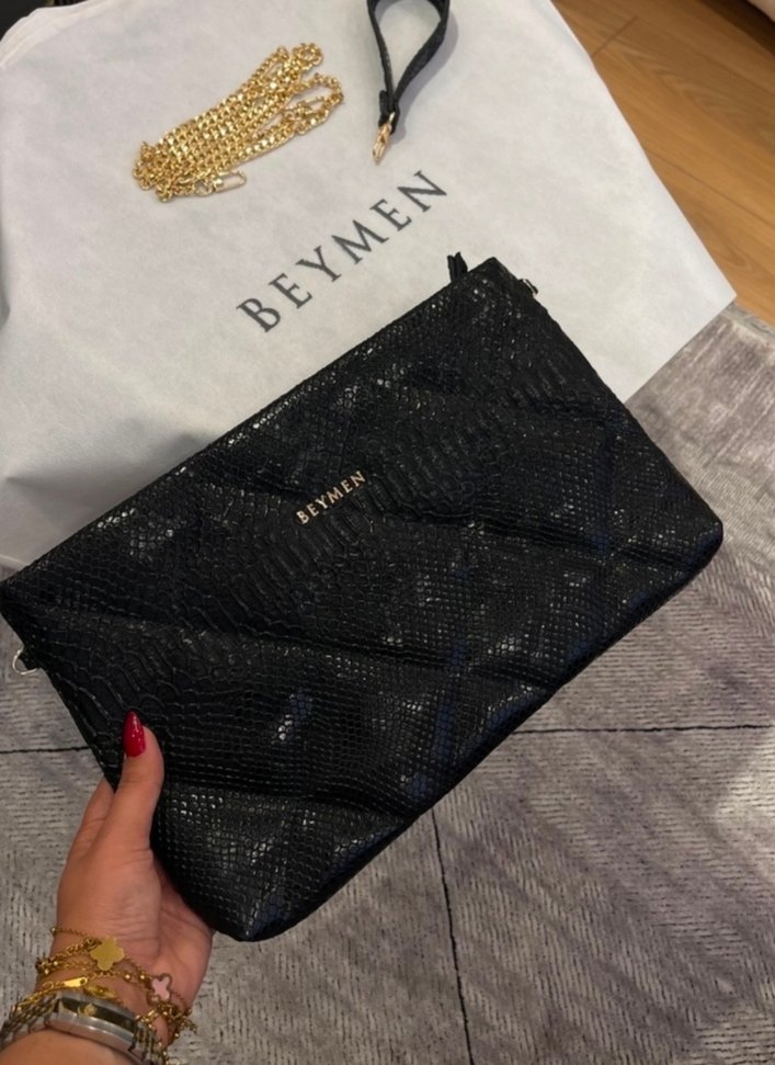 Beymen markalı, yılan desenli siyah deri kadın çanta, fermuarlı ve sokak stiline uygun. Ürün ithaldir. Beymen poşeti ile gönderim yapılır. İçerisinde çok kaliteli bir astar bulunmaktadır.