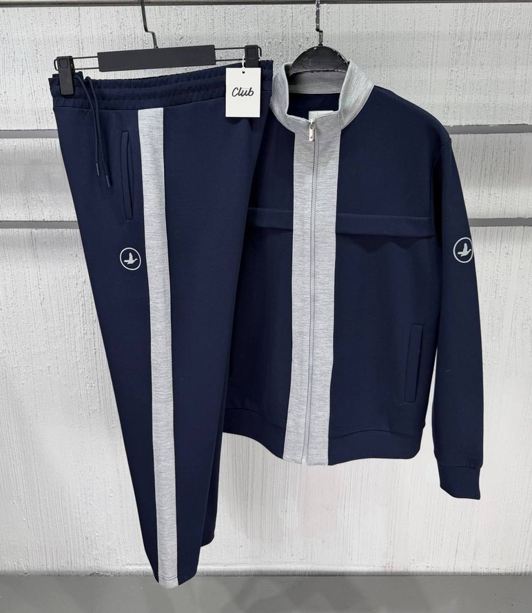 BEYMEN Erkek Mavi Gri Fermuarlı Eşofman Takımı