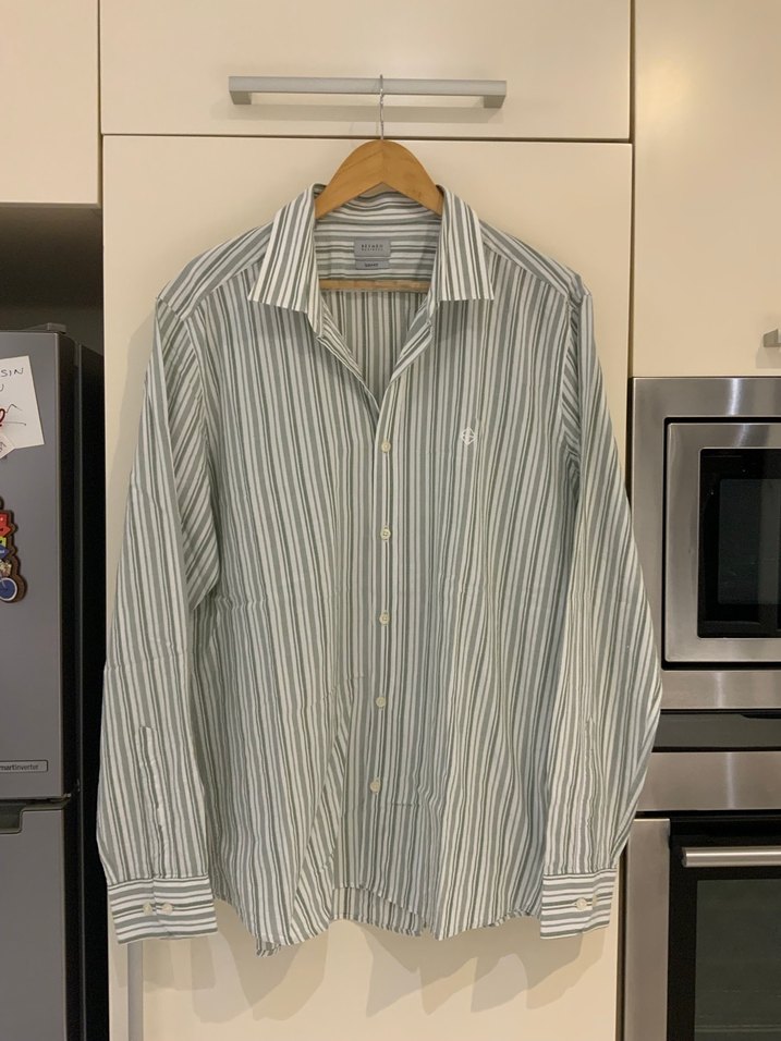 Beymen Haki/Beyaz Çizgili Gömlek