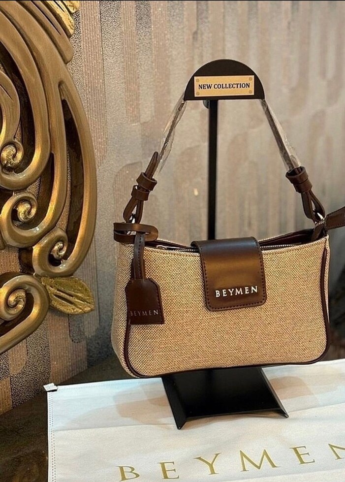 BEYMEN markalı, kemer detaylı, parlak desenli kahverengi kadın çantası, sentetik kumaştan, günlük sokak stili için uygundur.