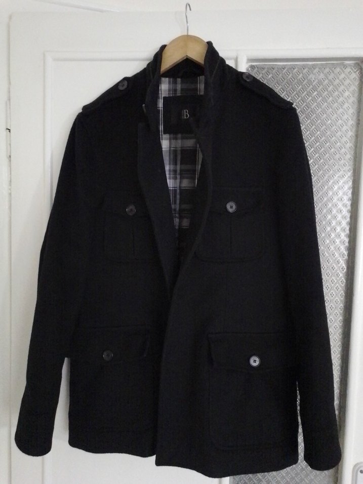 Kapalı halde iki koltuk arası: 58 cm Boy: 78 cm Mükemmel durumda. Ceket tarzında. Rengi siyah. Işık yüzünden soluk gibi görünebilir, kendisi öyle değil. Çok şık bir tasarım, hem resmi hem spor giyime uygun. Beymene gidip 15-20 bin TL vermenize gerek yok. Yeni sahibine hayırlı olsun. * Siyah, uzun kollu, düğmeli, normal kesim midi erkek ceket. Ofis için uygun, sokak tarzı etkisiyle.