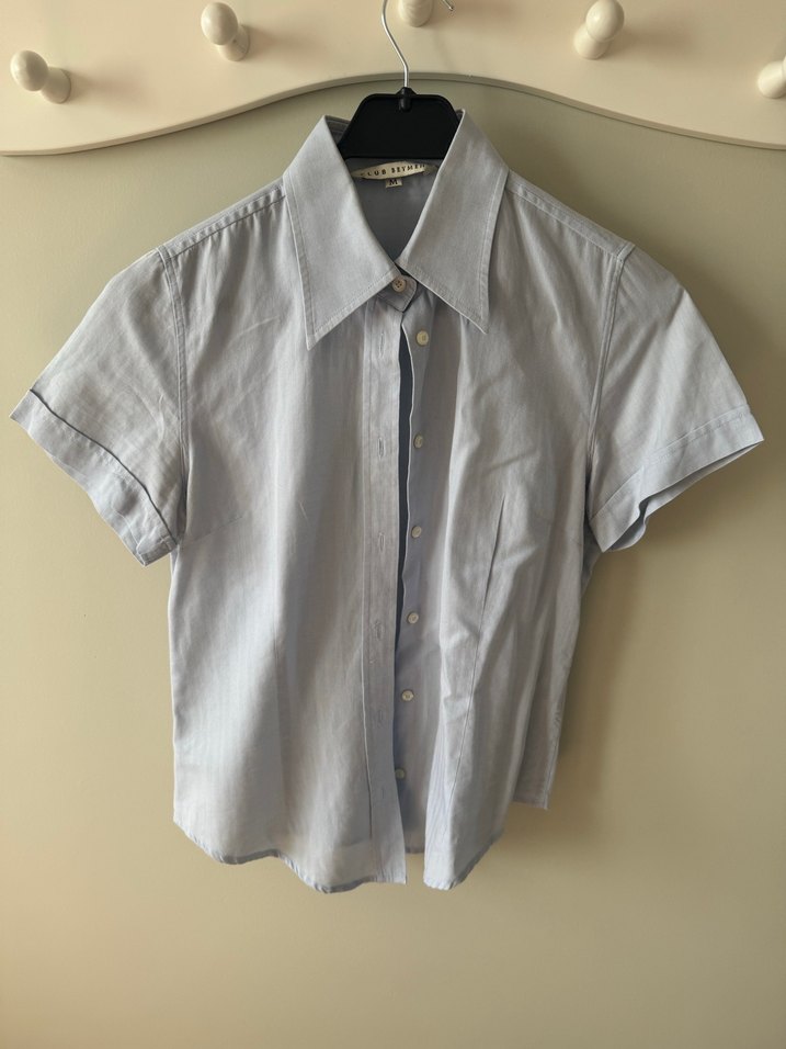 Orijinaldir kumaşı ince tam yazlık mavi renkli, kısa kollu, düğmeli, yakalı kadın gömleği. Keten kumaştan, normal kesim ve ofis ile günlük kullanıma uygun çok az kullanıldı
