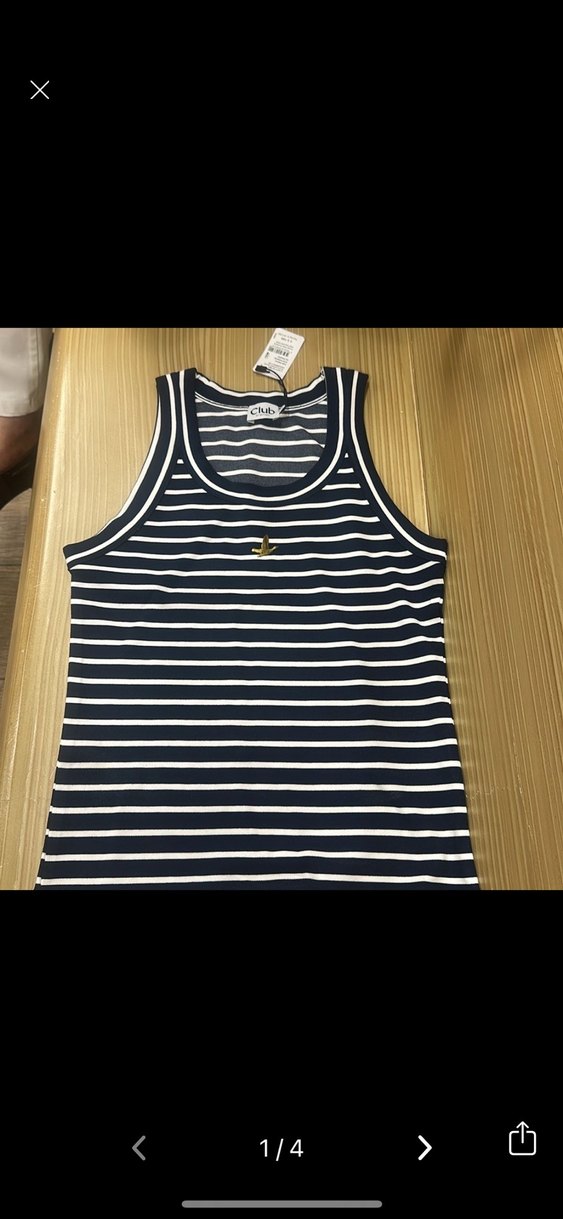 Pamuklu kumaştan, lacivert beyaz çizgili, bisiklet yaka ve fitted kesim kadın atlet. Günlük kullanıma uygundur. Hiç giymedim etiketi mevcut