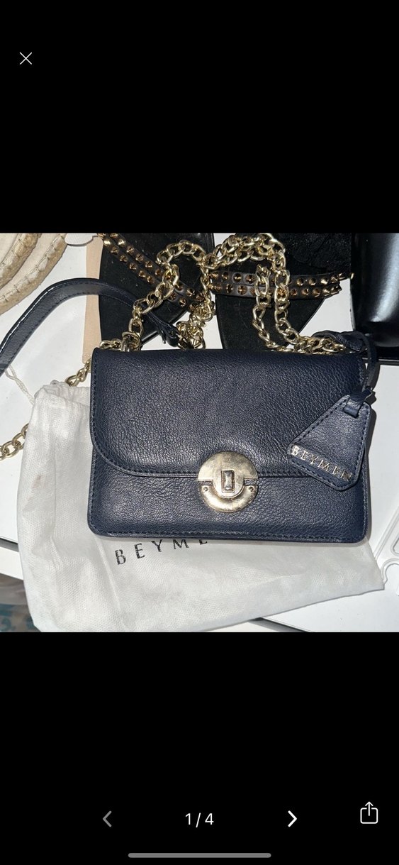 BEYMEN Lacivert Deri Kadın Zincirli Çanta