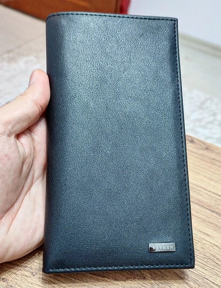 Kendi kutusunda, orijinal, hiç kullanılmamış seyahat cüzdanı. 8 ayrı kart bölmeli. Dışı siyah, içi kahverengi. Kendi telefonum Redmi Note10 Pro rahat bir şekilde giriyor içine. Ölçü: 19*10 cm.