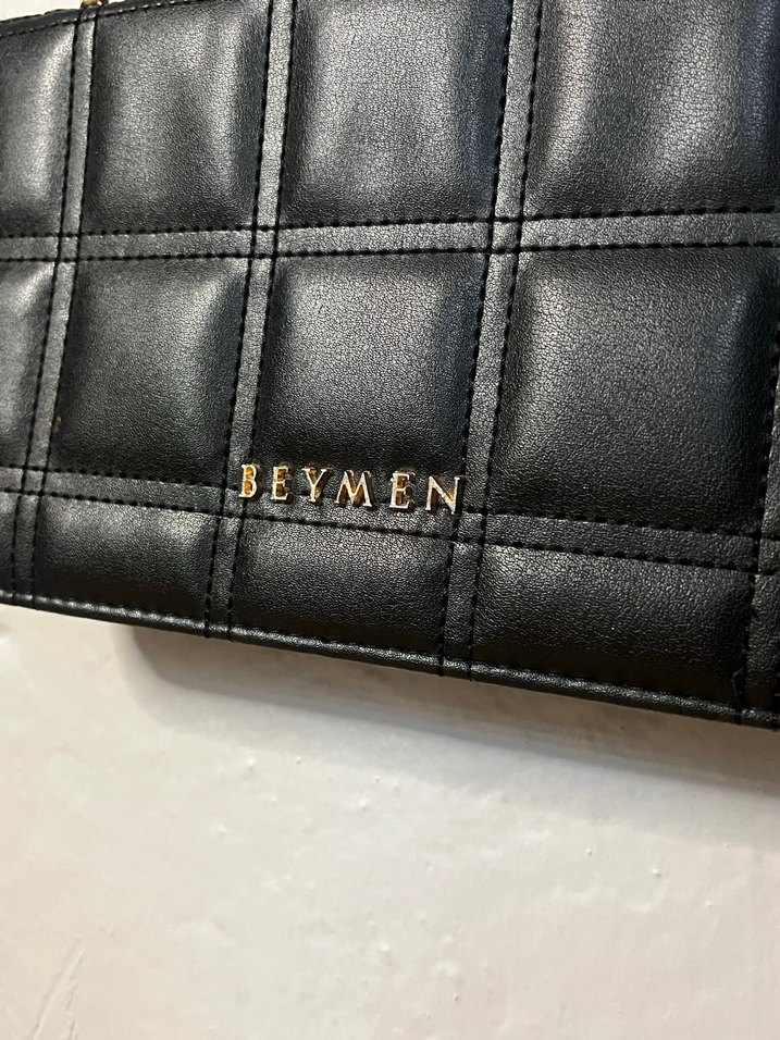 Beymen markalı siyah deri çanta, kareli deseni ve fermuarlı kapanışıyla Paris sokak modasıyla günlük kullanımı birleştirir. (Orj değildir)
