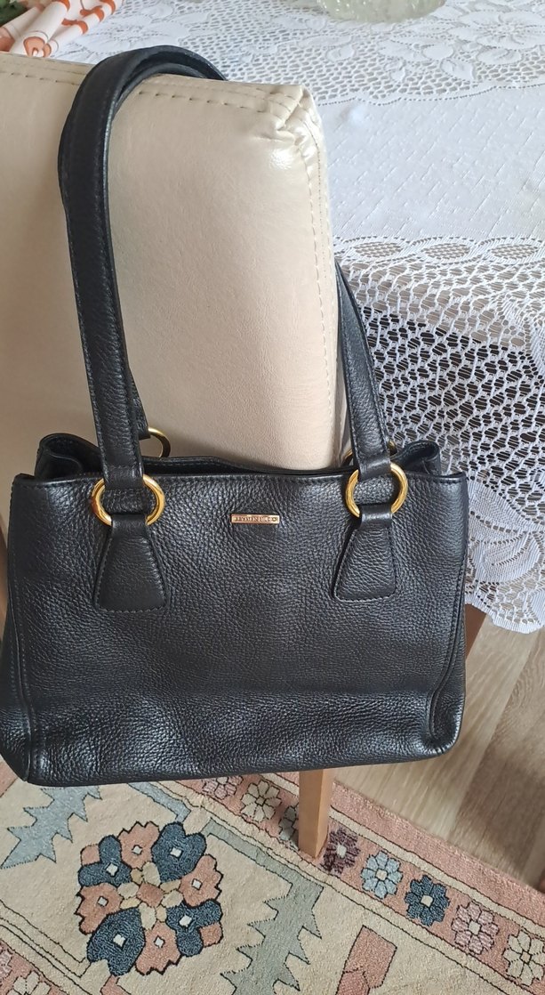Tokalı askılı siyah hakiki deri kadın çantası, birkac kez kullanıldı, hicbir problemi yoktur, yepyeni.