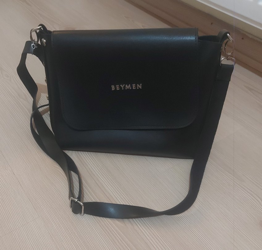 Beymen markalı, siyah deri ve tokalı kayışa sahip kadın çantası,resimde görüldüğü gibi tek gözlüdür içinde beyaz renkli olan küçük bir kart gözü var