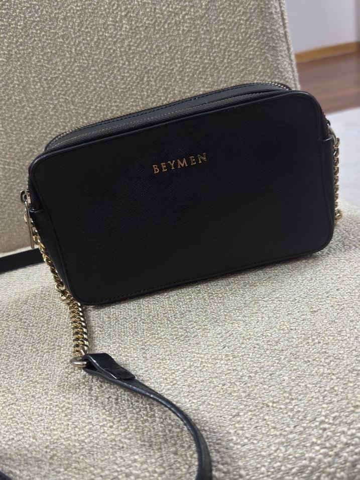 Beymen marka, siyah deri ve yılan desenli, zincir askılı, kemer detaylı kadın çantasıdır. Günlük kullanıma uygun, trend sokak stili için idealdir.