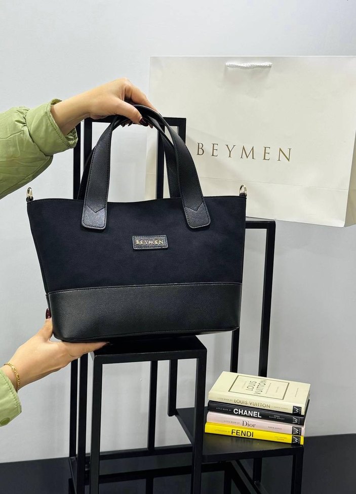Beymen markalı siyah süet ve deri malzemeden üretilmiş, baskılı detaylarıyla günlük kullanıma uygun çağdaş tarzda çanta. Beymen Clup ➡️35 Cm ⬆️24 Cm bab