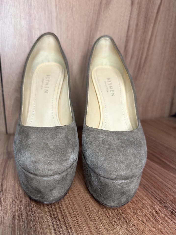 Orijinal Beymen Collection marka vizon rengi %100 gerçek deri. Tam kalıp 36 buçuk numara. Ayağınız zayıfsa 37 numaraya da olur. Yüksek topuklu ama platformlu olduğu için rahat yürünüyor. Platformu 4 cm, topuğu 13 cm. 2-3 defa giyildi.