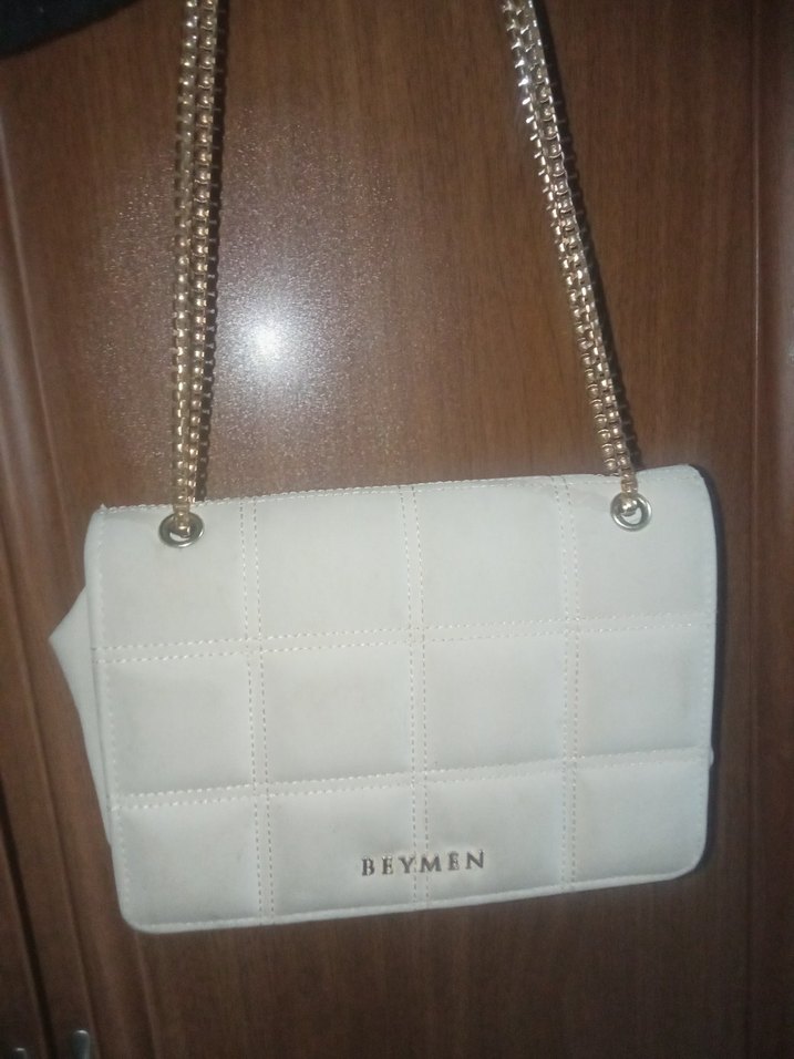 Beymen markalı, zincir detaylı ve kapitone desenli beyaz deri kadın çantasıdır. Günlük kullanıma uygun, trend sokak stiline hitap eder.