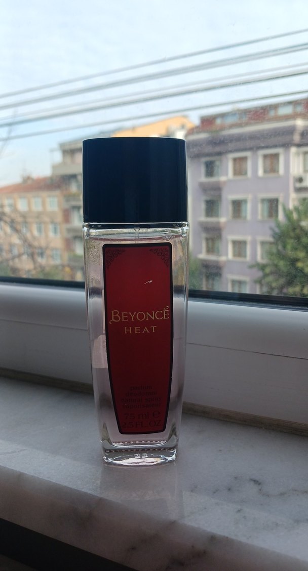 Beyoncé Heat kadın parfümü, 75 ml şişede sıcak ve çekici koku sunar. Siyah kapaklı ve kırmızı etiketlidir. ürünün turkiyede satisi artik yoktur cok kullandim artik sevmiyorum satistadir