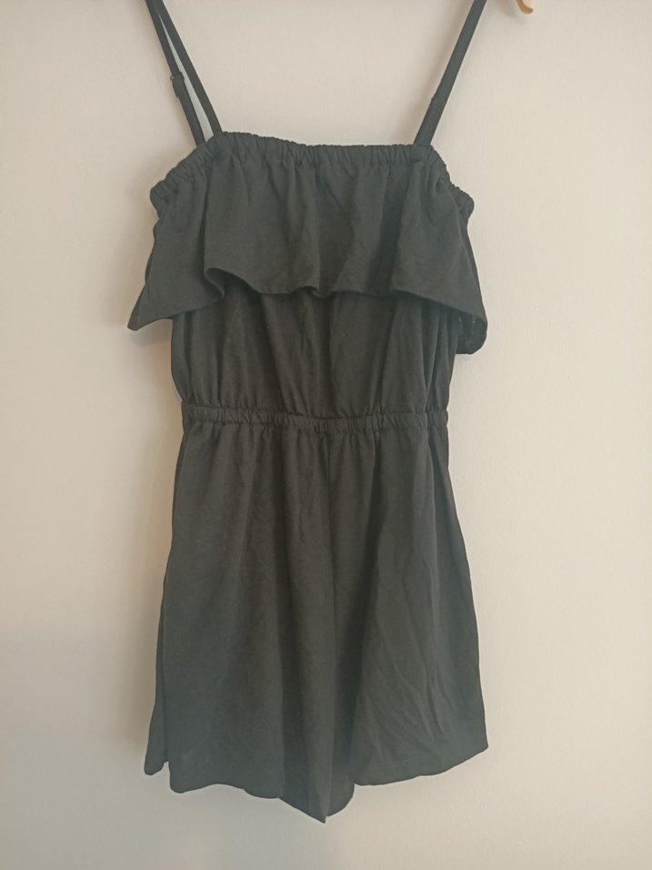 Beyou s-m beden Kadın Siyah Askılı Fırfırlı şortlu Tulum