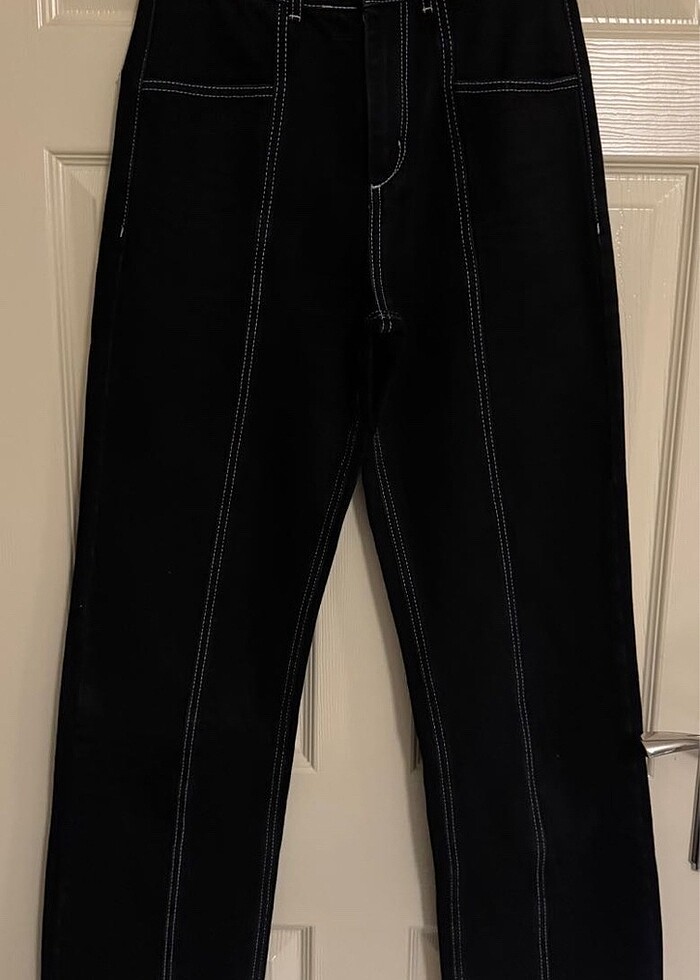 Beyyoğlu markasına ait siyah beyaz dikişli jean. 36 bedendir. Çok kaliteli ve güzel bir duruşu vardır. Artık bedenime uymadığı için satıyorum. Herhangi bir sorunu yoktur.