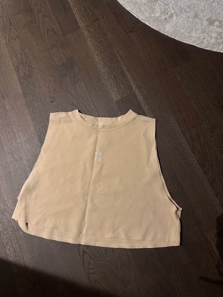 Bej renk, kolsuz, yuvarlak yakalı kadın atlet. Yumuşak keten kumaştan, bol kesim ve normal boyda, günlük ve spor giyim için uygun. ✨