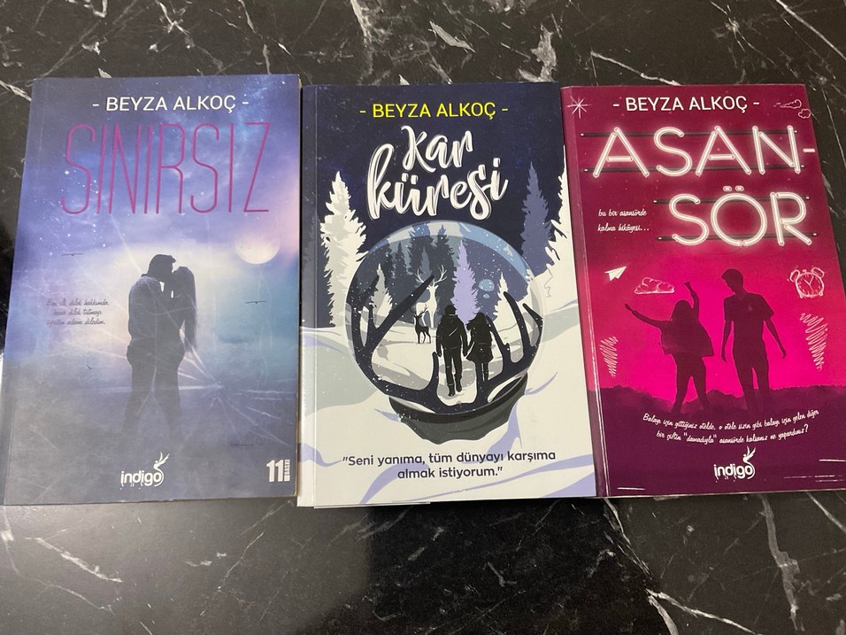 Beyza Alkoç'un "Kar Küresi" adlı romanı, karlı bir ormanda yürüyen çifti kar küresi içinde gösteren kapağa sahip. "Seni yanıma, tüm dünyayı karşıma almak istiyorum." cümlesi yer alıyor. ❄️