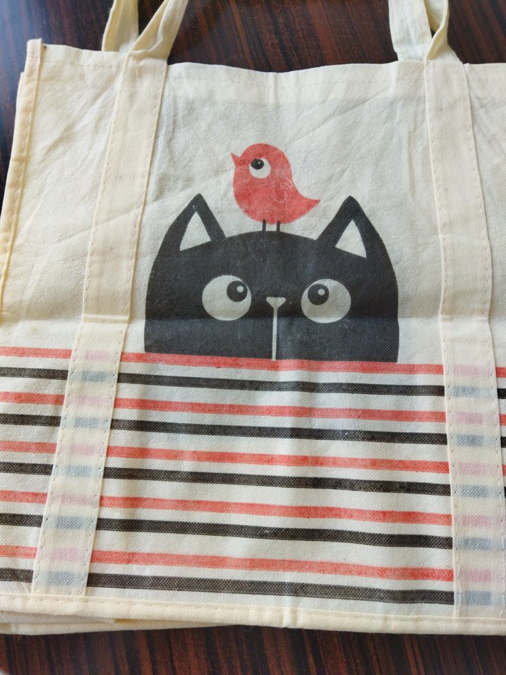 kedi desenli bez çanta 37*37 yan genişlik 19cm