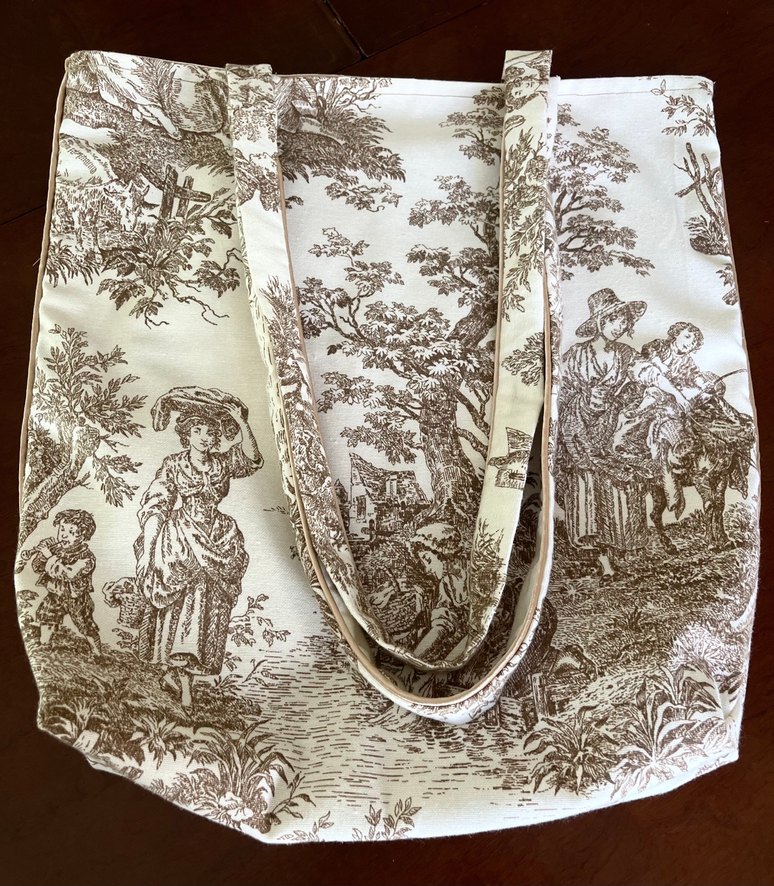 Astarlı, iç cebi fermuarlı kenarlarına biye uygulanarak model oluşturuldu. Bej renginde Fransız köylüleri desenli şık hafif sağlam çanta