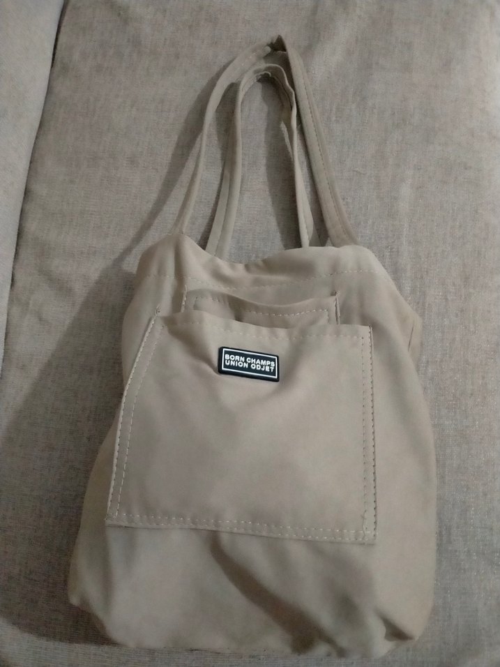 Bej süet omuz çantası, ön cep ve çift askılı minimalist tasarım, günlük sokak modası için uygun. Zahmetsiz şıklık sunar.
