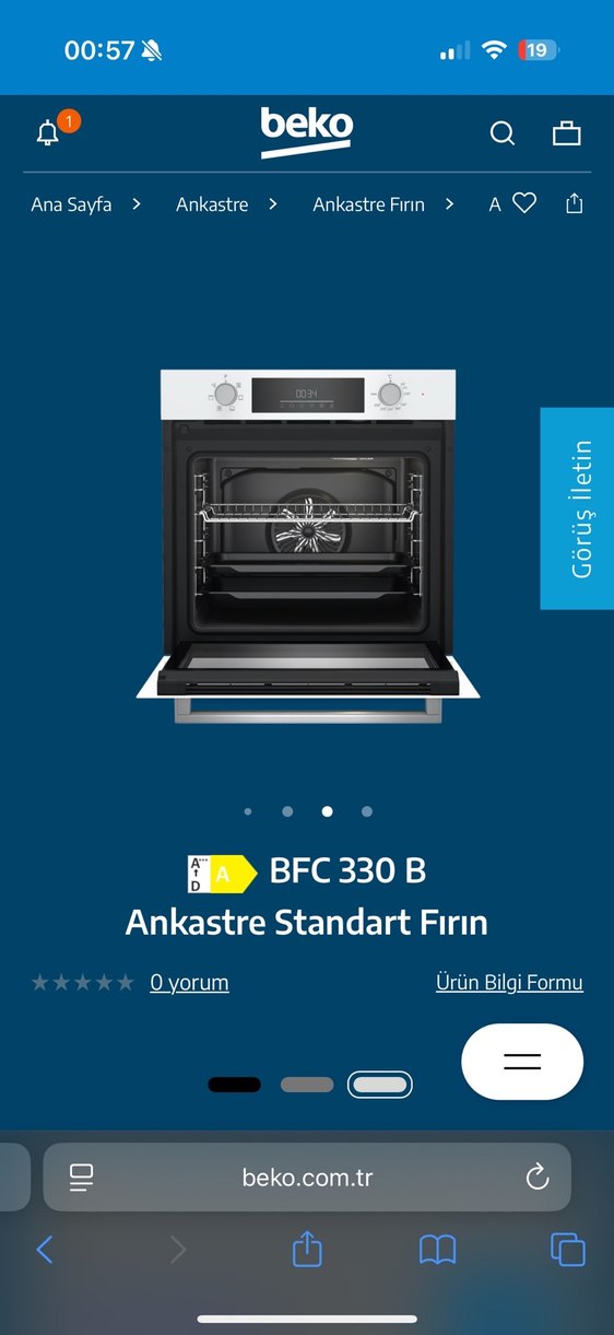 BFC 330 B beyaz ankastre standart fırın, iki düğmeli kontrol paneli ve iç fan ile eşit pişirme sağlar. Tel raf ve fırın tepsisi içerir. ⚙️ Taşınıyorum fiyatı uyguna koydum garantisi bitti fakat az kullanıldı hiç bir sorunu yok