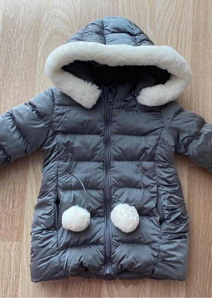 BG baby marka kapüşonu kurk detaylıdır. 2 yaş yazıyor ama 1.5 yastan itibaren tam olur. Sadece 1 sezon giyilmiştir. Makinede yıkanmıştır. Önünde çok minicik bir delik vardır. Dikkatli bakılmadıkça gözükmez. O yüzden fiyatı uygun tutuyorum.