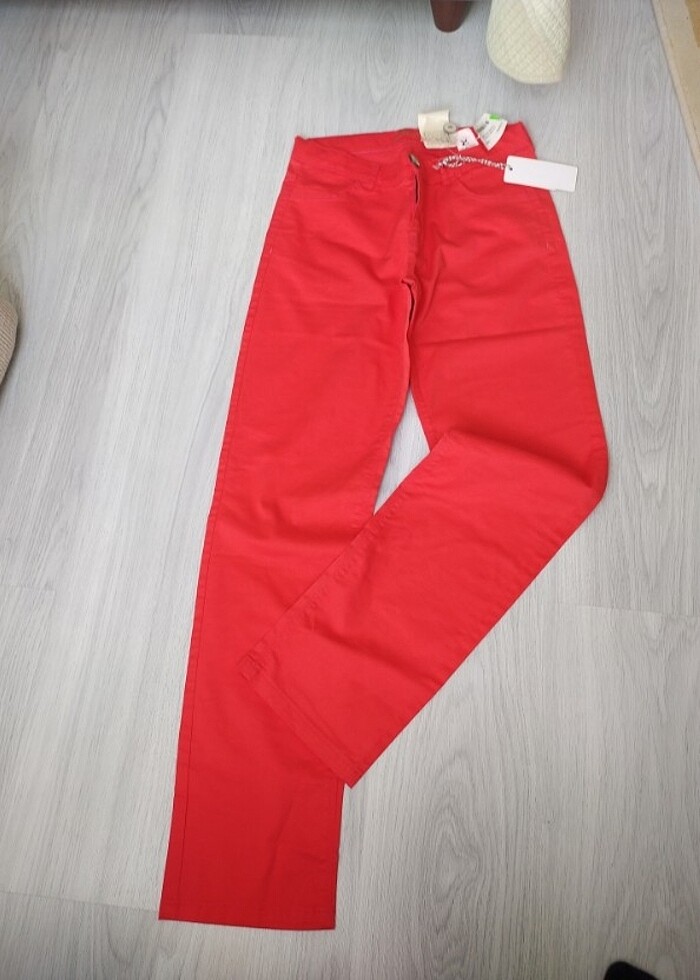 Etiketli ,sıfır pantolon nar cicegi renginde çok jsliteli