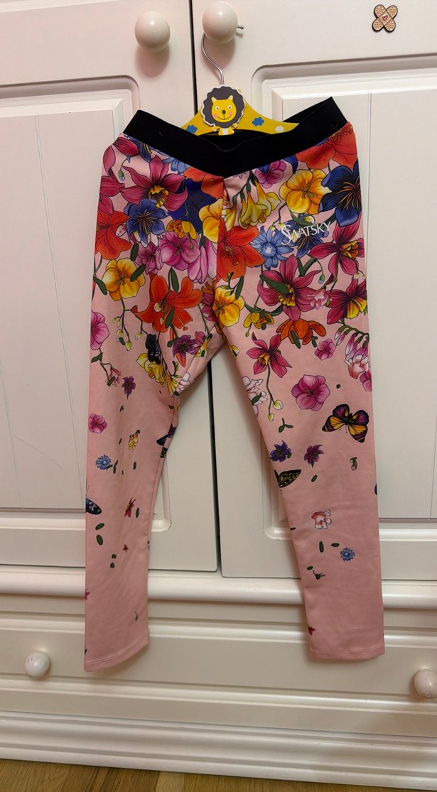 Pastel pembe renkte, canlı çiçek desenli, elastik bel bantlı kız taytıdır. Sokak stiline uygun bir modeldir.