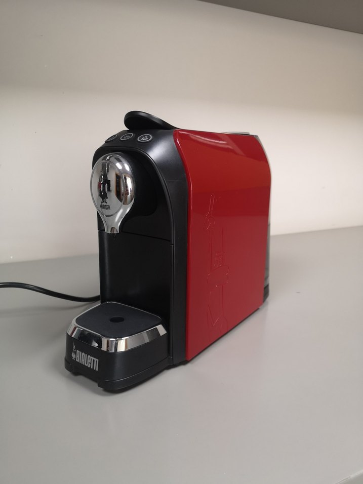 Kompakt tasarımlı kırmızı Bialetti kahve makinesi, kullanımı kolay. Hiçbir sıkıntısı yoktur. Kutulu üründür.