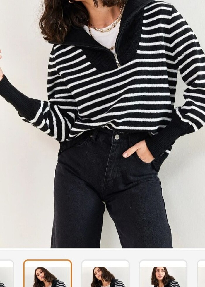 Kadın balıkçı yaka fermuarlı kolları düğme desenli kazak. Sadece bir kez giyildi.