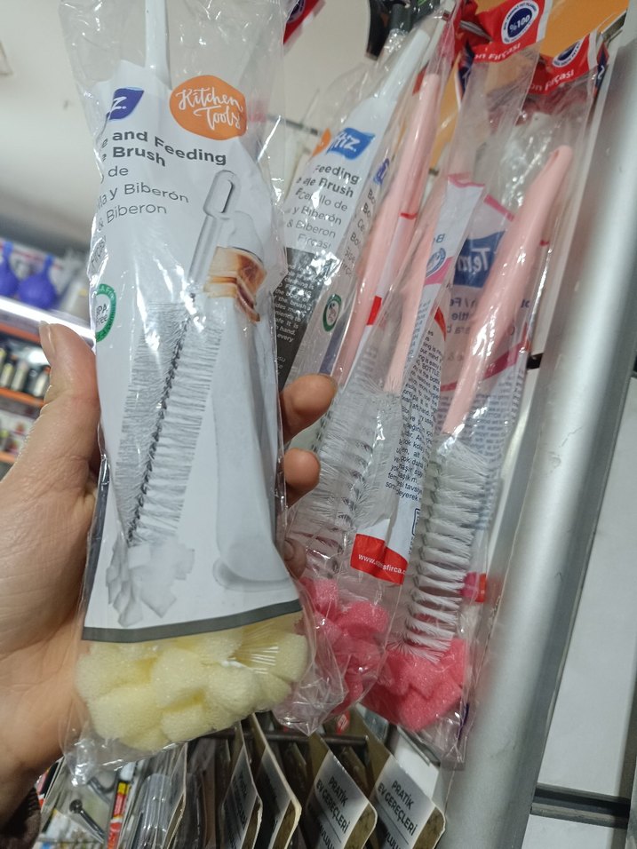Pastel renklerde biberon temizleme fırçası, yumuşak kıllarıyla etkili temizlik sağlar. Biberonun her köşesine ulaşır. tekli fiyat