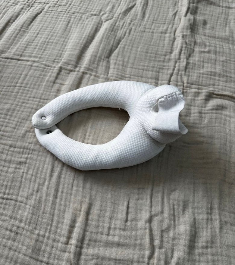 Gri yılan desenli, hamilelik ve emzirme için yumuşak dokulu kumaştan yapılmış, konfor ve destek sağlayan yastık. Güvenli çıtçıt kapamalı.