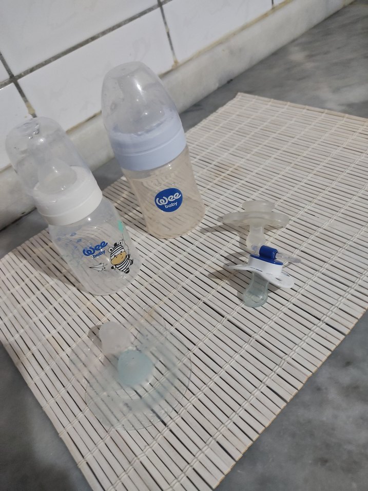 ürünler çok az kullanılmıştır bir emzik ve diğer üründe gördüğünüz gibi hafif yeşil renk bulaşmıştır o çıkmayan bir tedavi eden ilacın boyası zararsız kesinlikle özbekistan'dan gelen bir ilaçti isteyene emzik kutusu da eee baby eklenebilir