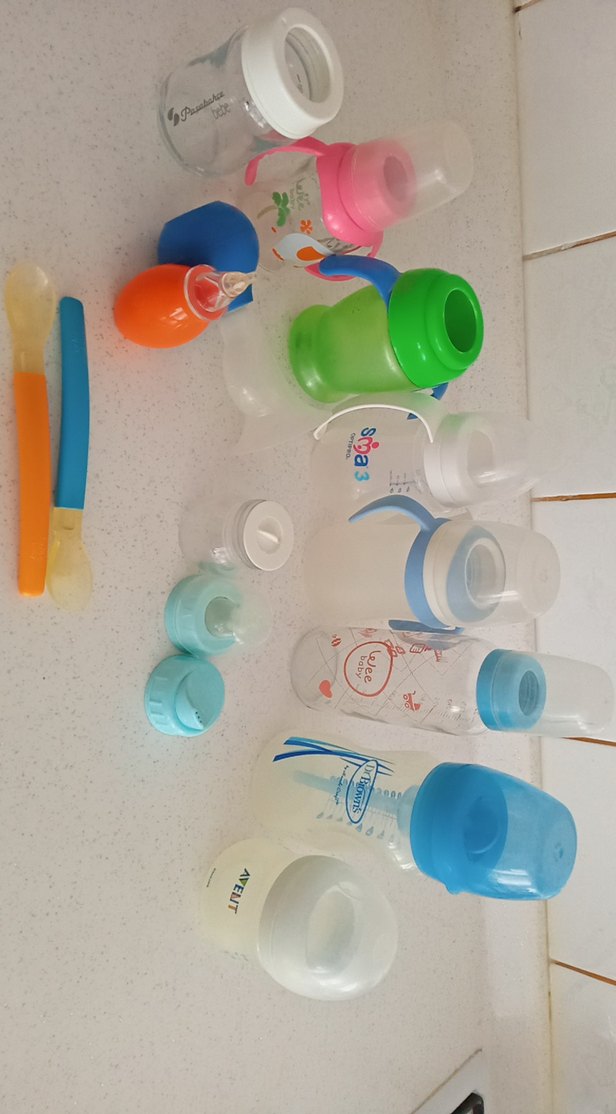 Çeşitli boylarda mavi, yeşil, pembe ve turuncu kapaklı renkli bebek biberonları ve iki adet bebek kaşığı. Bebek beslemek için uygundur. emzik kısımlarını attım hijyen açısından bebeğin ayına uygun alınması lazım. burun aspiratörü yeni doğan için ilk bir ay iş görüyor nazikçe çekiyor, göğüs pompası ilk aylarda süt gelmesi için alıştırma yapmaya uygun bana yeterli geldi . ürünleri alan kişi hepsini tencerede 10 dk kaynatsin bişey olmuyor ,sadece kenarda durmaktan biraz buğulu gözüküyorlar , kaşıklar 1 yaşa kadar yeterli oluyor. izmit Körfez 95 evler eldende teslim edebilirim
